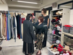 学生たちの「好き」が大いに盛り込まれたスタイリングとなりましたが、普段身に付けることのないアイテム使いに参加者様には喜んでいただけたようです。