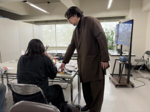 元祖コラージュデザイン画の指導者、國行先生とアシスタントの学生が担当です。